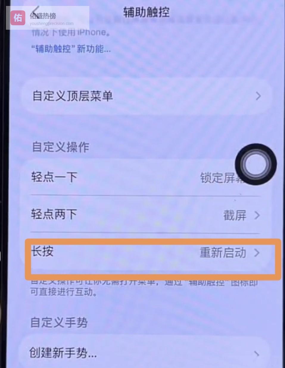 把长按动作设为“重新启动”,以后长按小白点就能直接重启,再也不怕卡死。