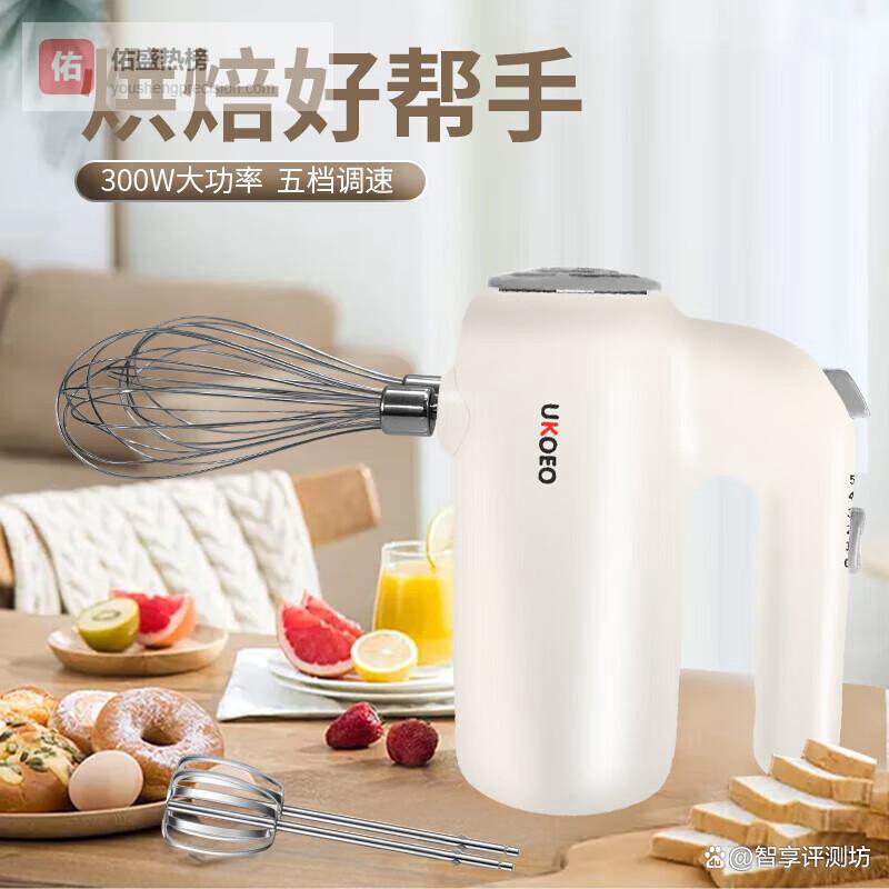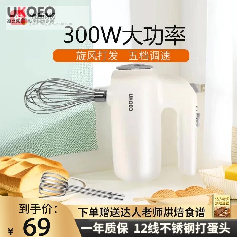 UKOEO高比克U2 家用电动打蛋器 迷你手持料理机打发器蛋清奶油黄油蛋糕烘焙搅拌器【配线棒片棒】 白色¥