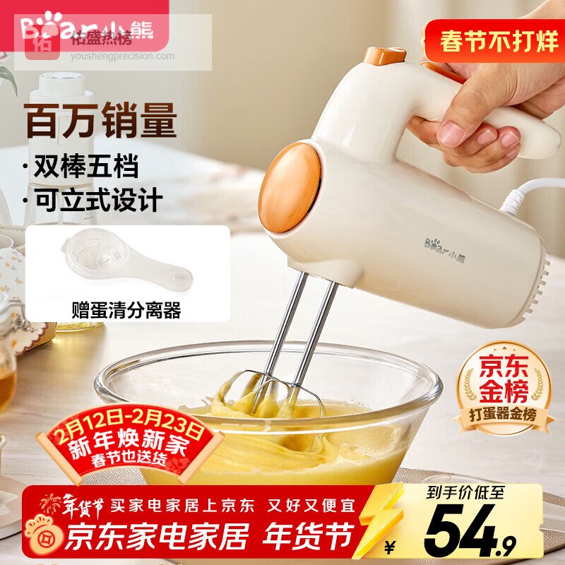点评:这款小熊打蛋器的设计确实挺贴心的,五档调速可以应对各种搅拌任务,比如打奶油、蛋白都没问题。双棒搅拌,接触面积大,打发的速度快又均匀,不会溅得到处都是。手柄的人体工学设计,握起来特别舒服,不会觉得手酸,用久了也不累。