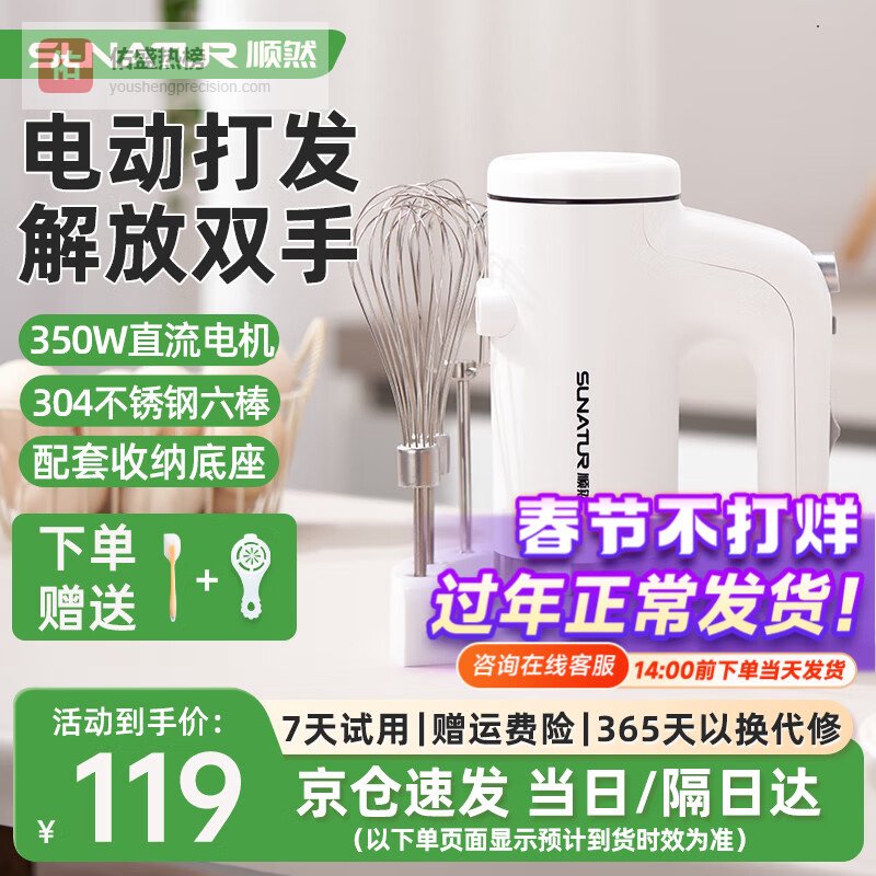 顺然510打蛋器电动 家用蛋清奶油打发器手持式350W大功率搅拌器多功能烘焙工具打蛋机 304不锈钢六棒【配收纳底座】¥