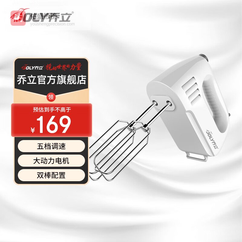 点评:这款乔立B98打蛋器确实挺实用的,拥有350W/450W的可选功率,打发食材速度快,效率还不错,做糕点省时省力。4档调速功能,你可以根据不同的食材选择合适的速度,比如慢速搅拌全蛋和液体,中速搅拌果酱、宝宝辅食,高速打奶油都挺顺手,满足多样需求。
