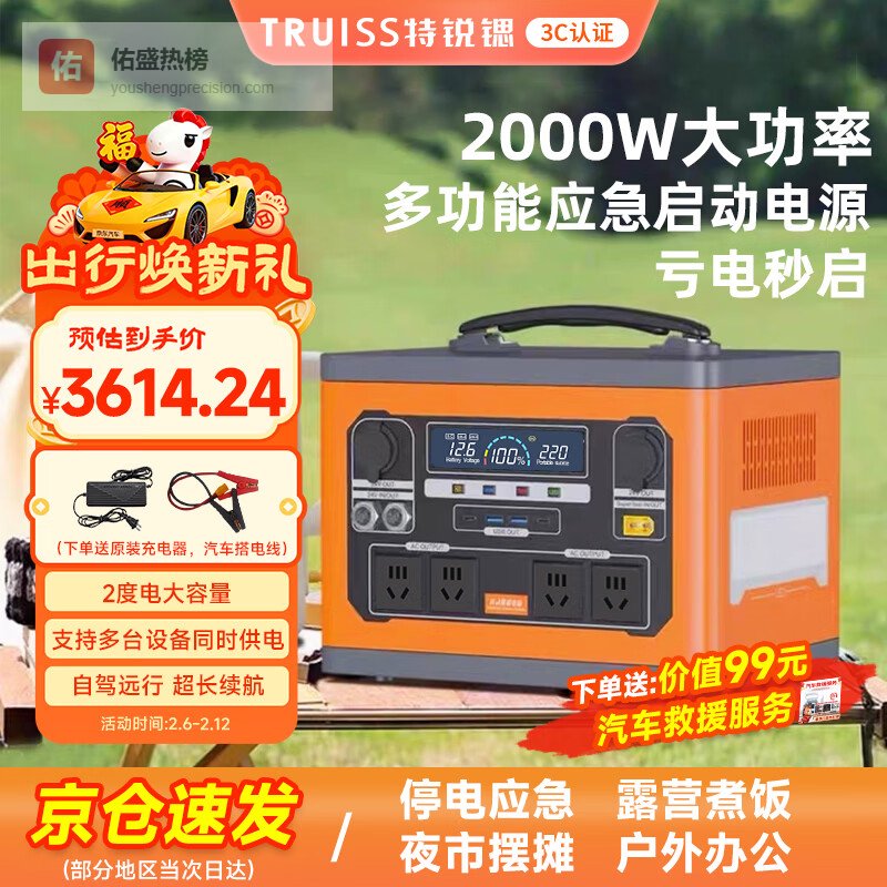 【京东自营】特锐锶2度电220V大容量2000W户外移动电源夜市摆摊直播自驾露营户外作业办公储能电池¥