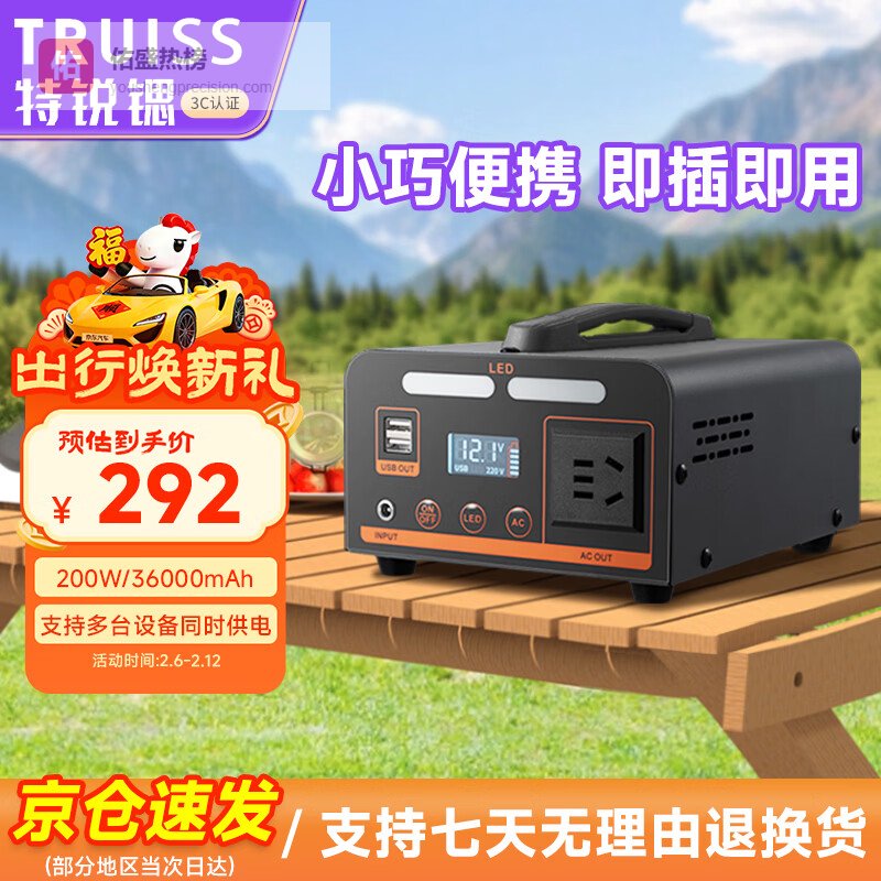 【京东自营】特锐锶户外移动电源220V轻巧户外电池200W大功率3.6万毫安野餐摆摊停电应急便携电源¥