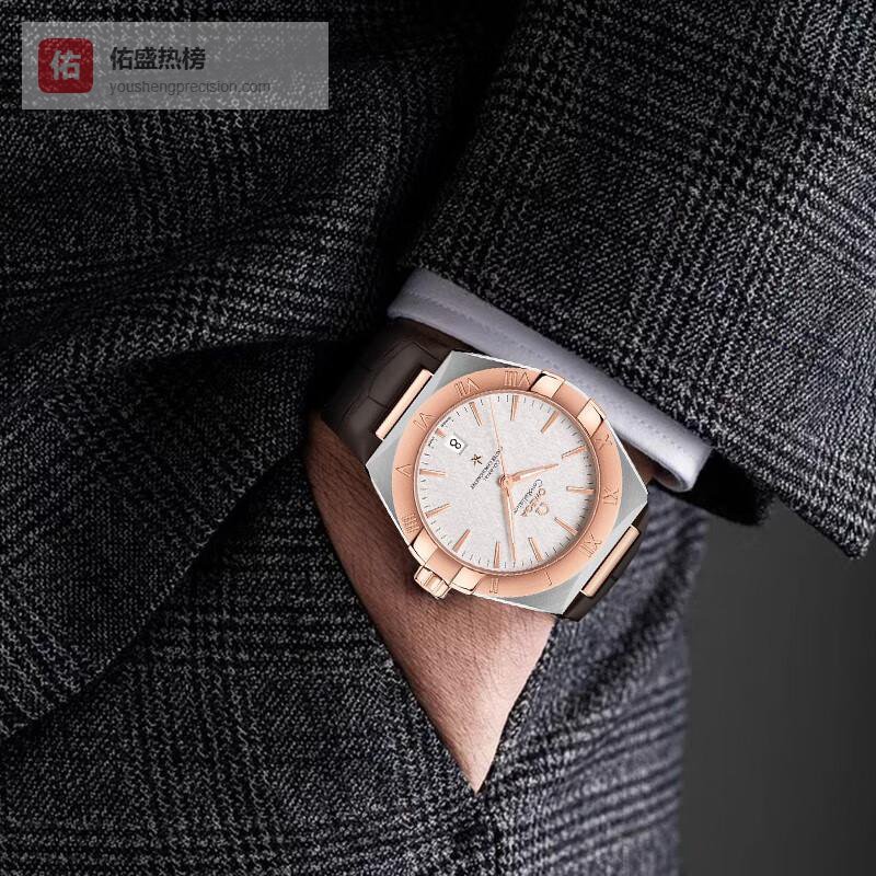 追求优雅与准确性的品牌体现,采用欧米茄2500同轴机芯,这款男士手表能够精准显示时分秒和日期,完美契合商务场合的需求。其独特的设计灵感来源于20世纪60年代的星座系列表盘,浅银色表盘呈现出丝绸般的细腻质感,让每次查看时间都成为一种享受,尽显风范。