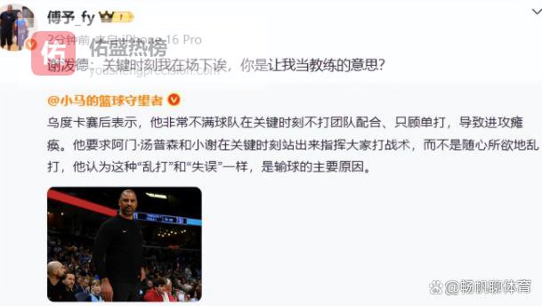 比赛失利后,乌度卡的一番言论更是火上浇油,彻底引发争议。他不仅没有反思自己的执教问题,反而将输球责任全部甩给球员,直言不满球队关键时刻放弃团队配合、只顾单打,还要求阿门和谢泼德站出来指挥战术,指责球员的 “乱打” 是输球主因。这番甩锅言论立刻遭到各界的嘲讽与反驳,因为比赛关键时刻谢泼德根本就没被安排上场,乌度卡的指责毫无事实依据。