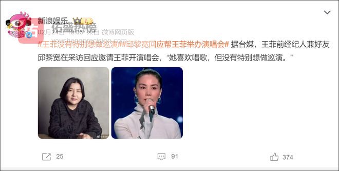 也有人会说王菲虎年春晚演唱《传奇》后口碑飙升,之后开了十多场演唱会赚得盆满钵满,这次也能通过后期开演唱会捞金。但王菲的经纪人已经辟谣了,称王菲没有开巡演的打算。