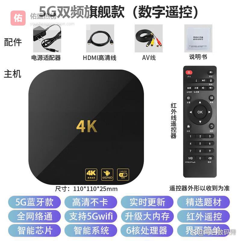 在观看体验上,该高清电视盒子无疑是一个理想选择,它具备4K高清解码能力,让观众能够享受到清晰细腻的画面,仿佛置身影院之中。更值得一提的是,其强大的5G双频支持确保网络速度飞快,让视频播放畅通无阻,无论是在线观看电影还是直播节目,都能实现完美呈现。