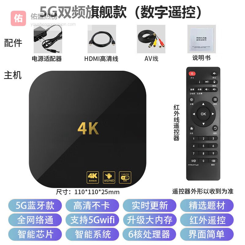 英非尼无线网络机顶盒4k数字5G电视机观影家用高清电视盒子智能高清通用限量-只支持连网线¥