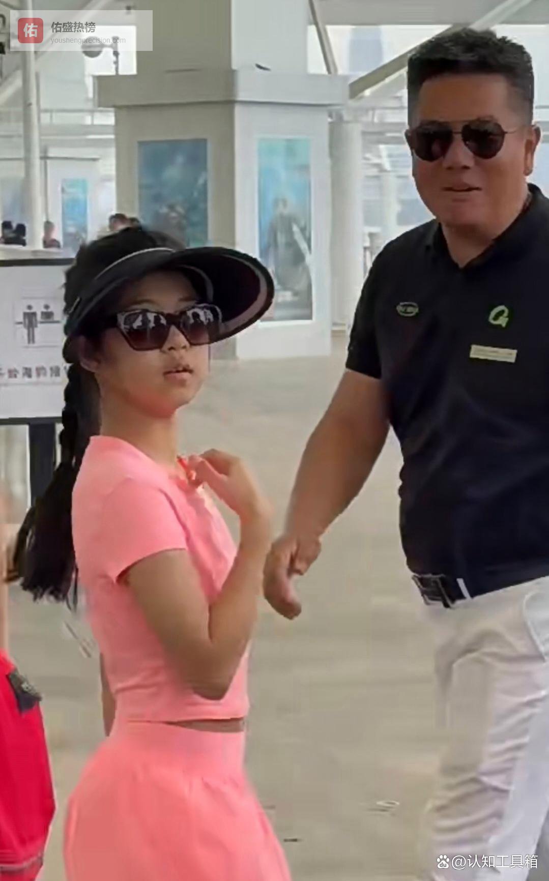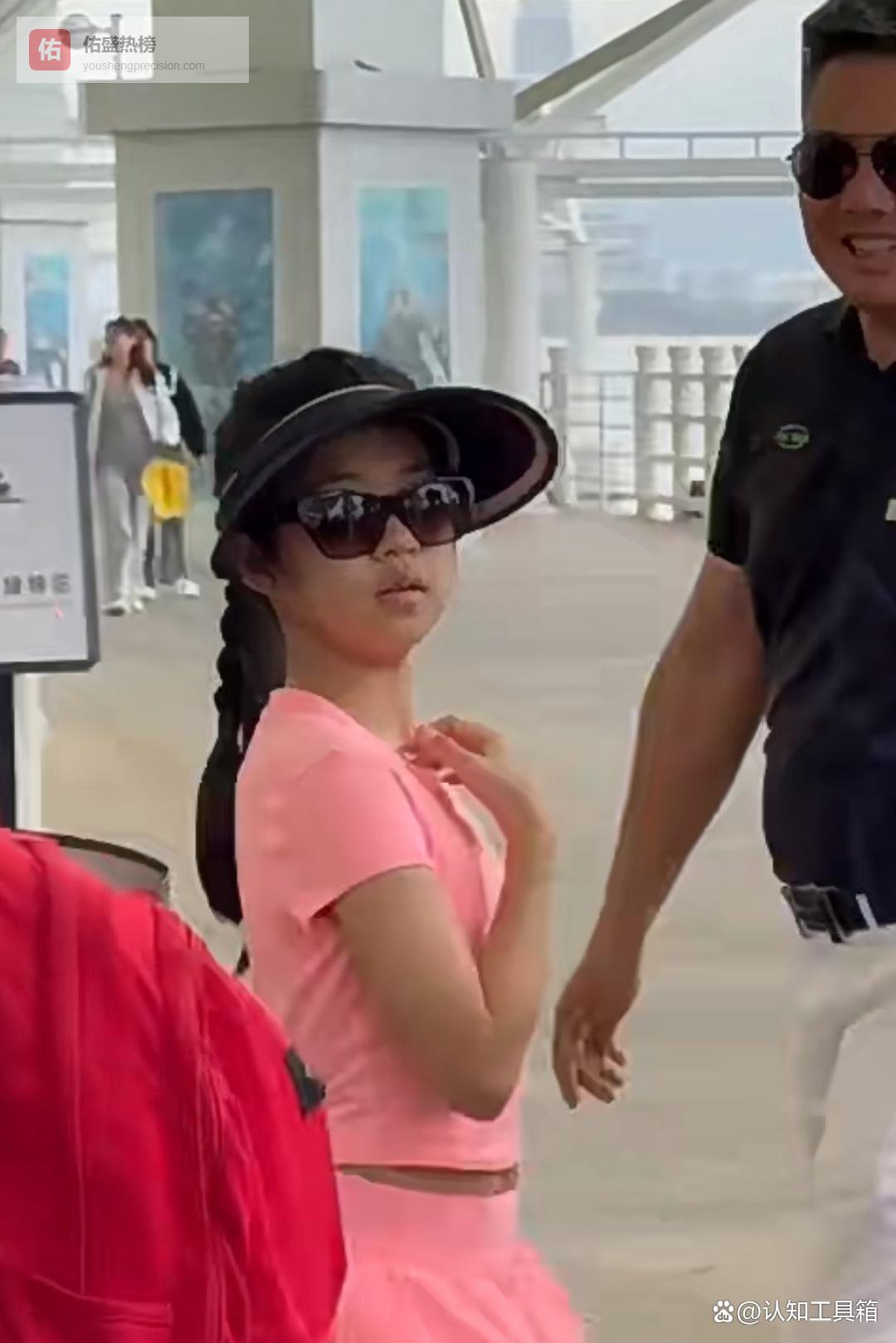 那姑娘穿着粉色衣服,皮肤颜色挺深的。她走路很快,回头的时候下巴抬了一下。有人看见她,小声说了句话,意思是这姑娘和章子怡家里那位很像。