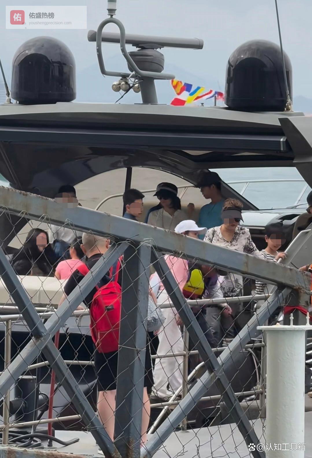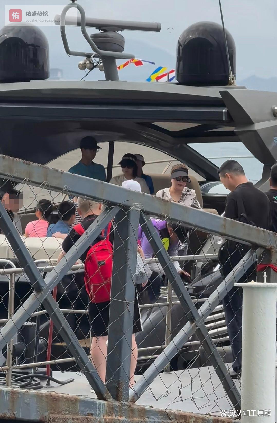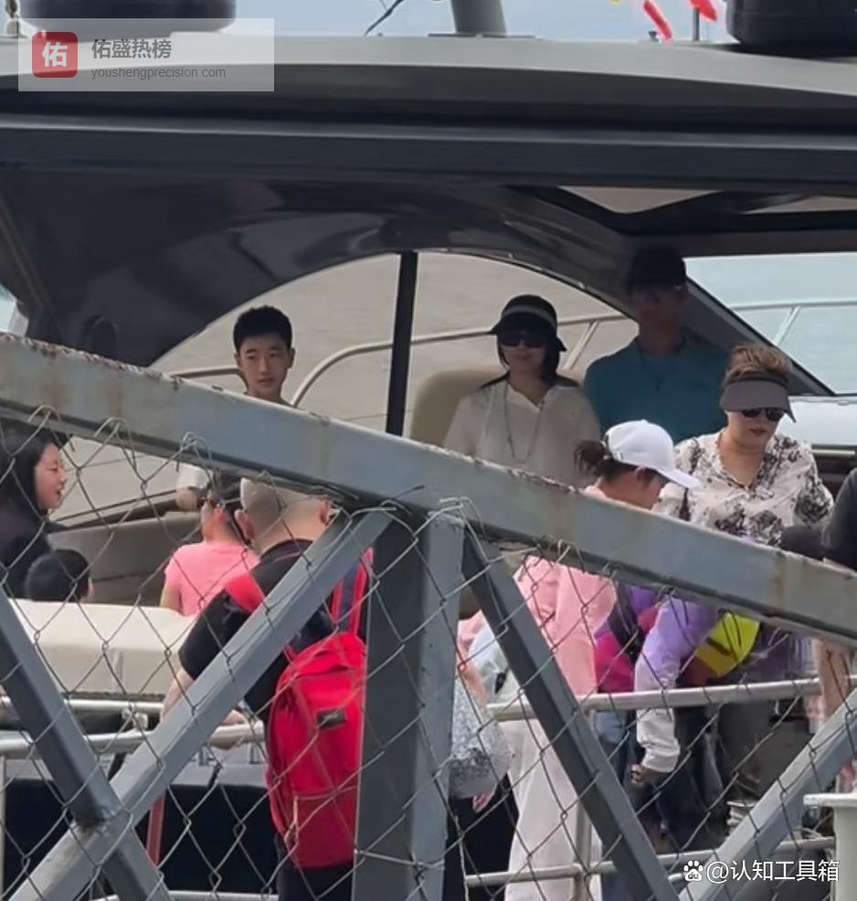 章子怡在船上,周围很多人。