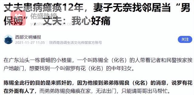 广东男子瘫痪12年,妻子找邻居当“男保姆”,丈夫:我尊严没了!