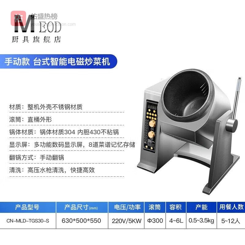 LZJV商用炒菜机哪个系列好?第一款:LZJV全自动炒菜机280型商用电磁锅