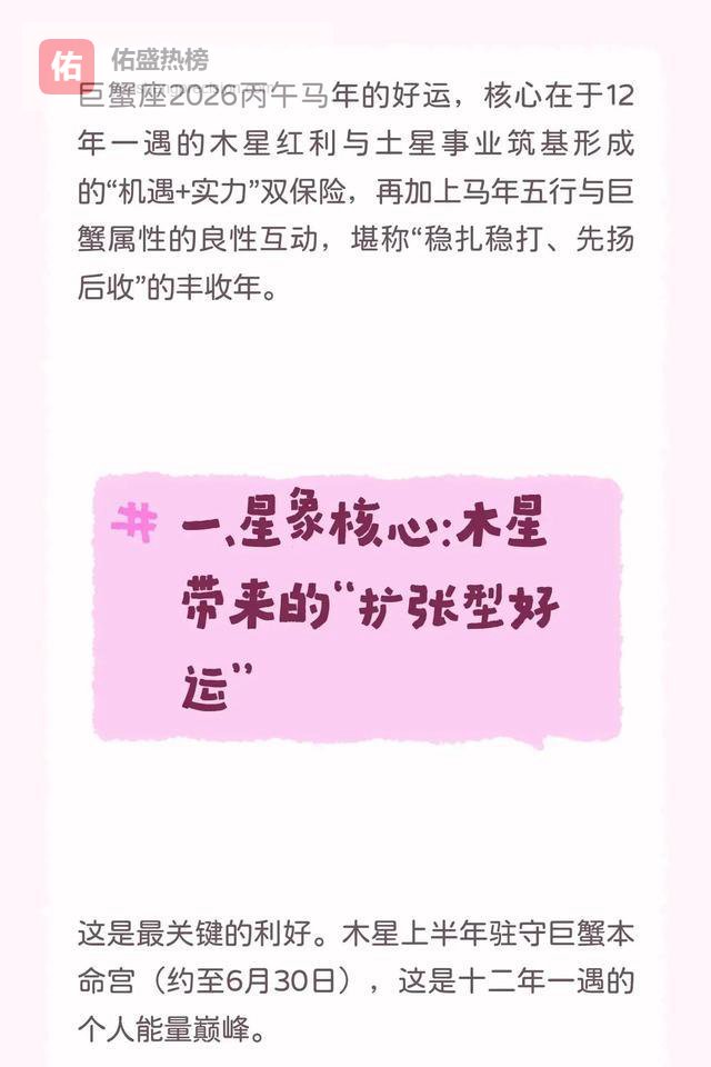 2026年上半年,它就正好溜达到巨蟹座自己的地盘上来了,这可是个十二年才轮到一次的大好事。