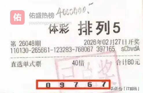 2026年2月27日,体彩排列5第26048期开奖,一组号码09767让一位彩民的名字瞬间成为彩圈焦点。他凭借“先复式后单式40倍”的神操作,独揽410万元大奖,刷新了当期排列5的最高中奖纪录,也让无数彩民直呼“运气挡不住”。