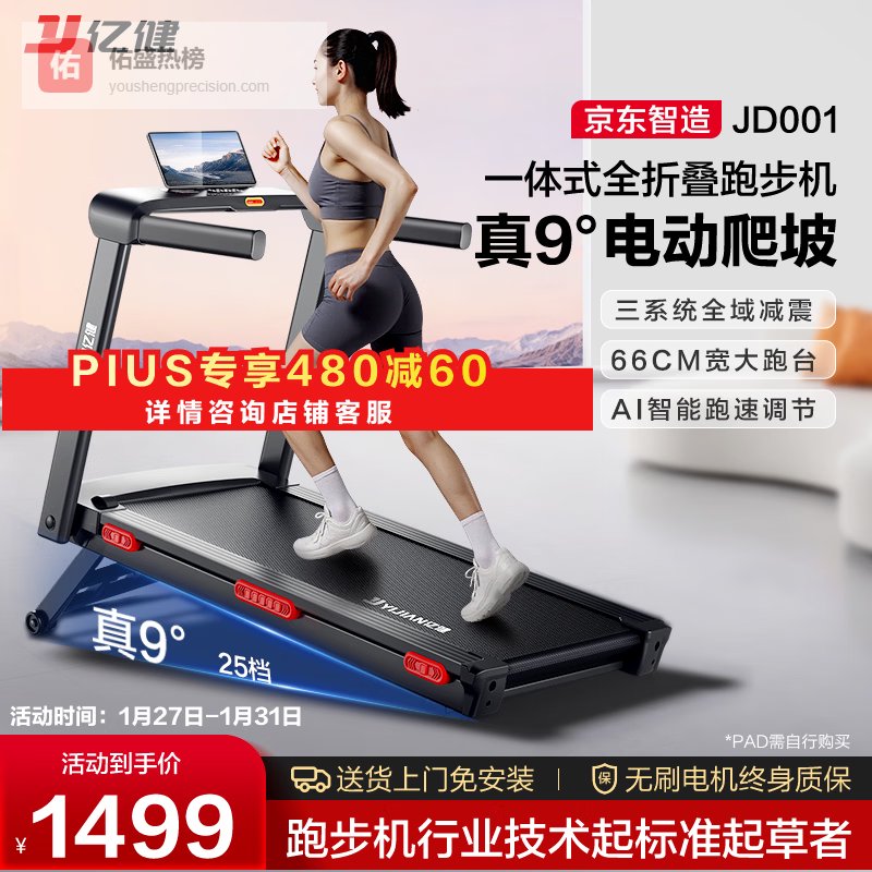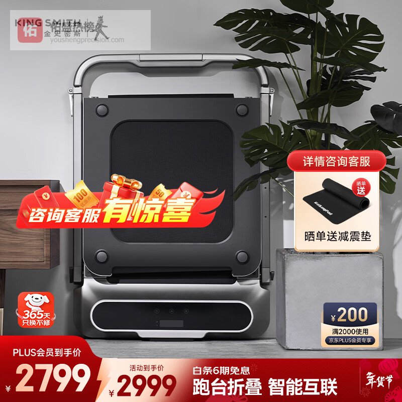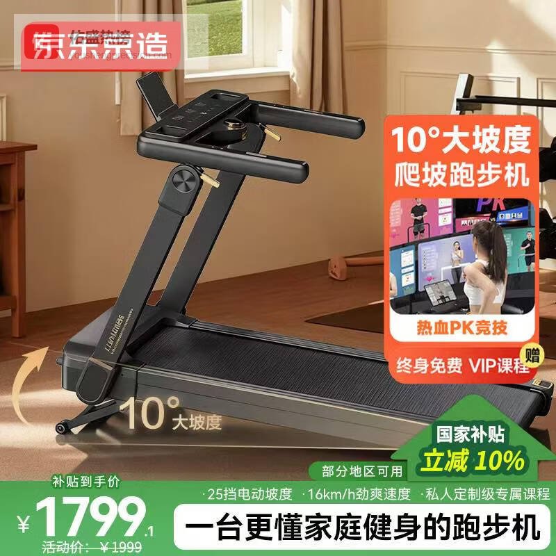 京东京造跑步机家庭用升级2.0智能爬坡全折叠减震走步机健身房器材PB-001¥