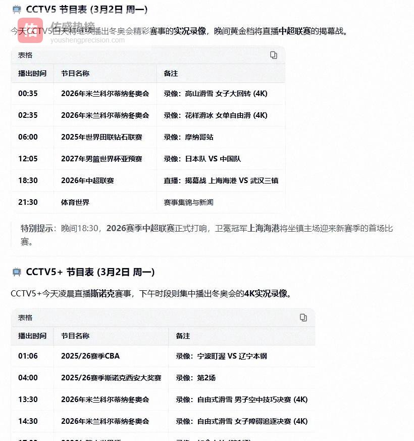 体育频道偶有插播或调整,以央视官方为准