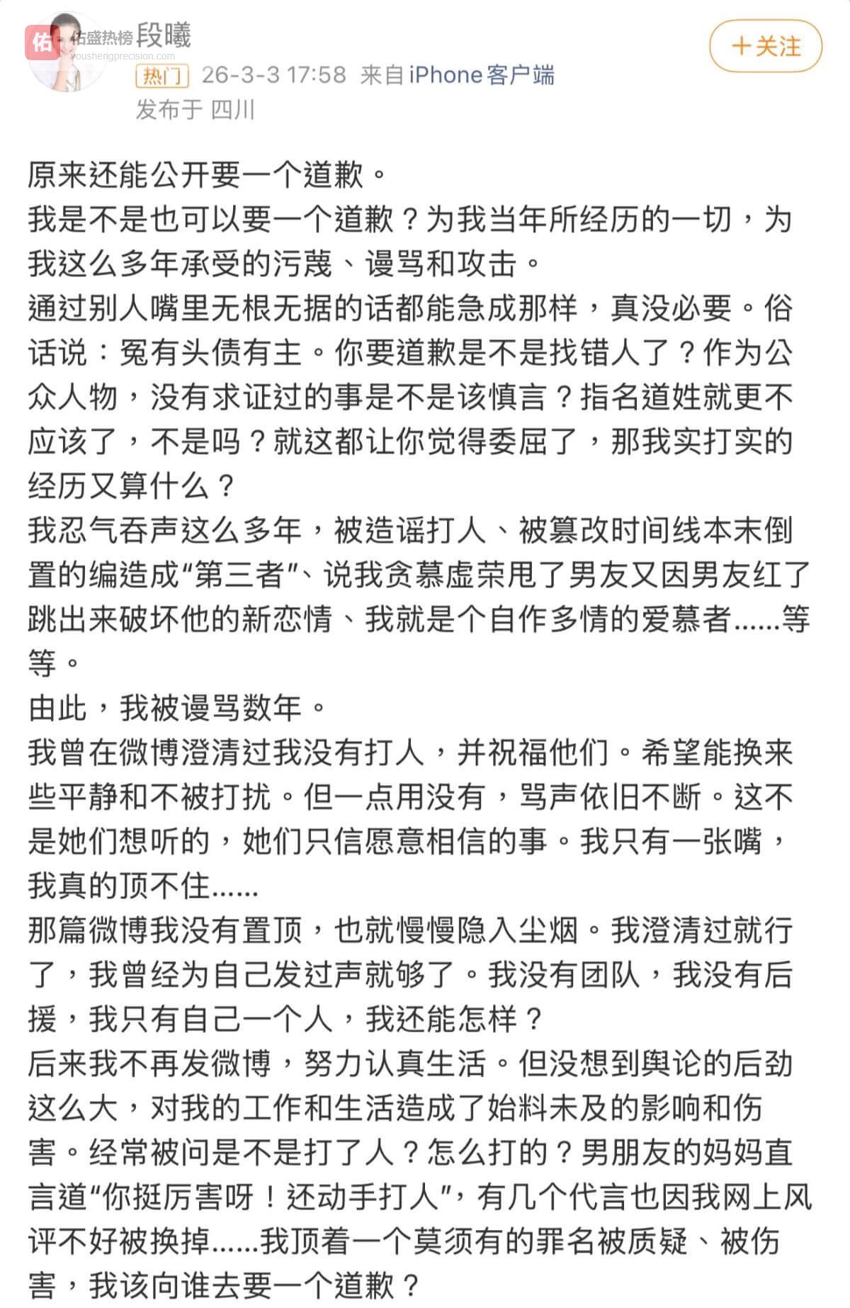 但段曦这么多年的微博评论区,都是谢娜粉丝和张杰粉丝在骂她,从未停止…去年在张杰成名曲之一《北斗星的爱》的作曲人苟伟去世后,她还发文悼念,并公开了当初的手稿,当时评论区也都在骂她蹭热度。