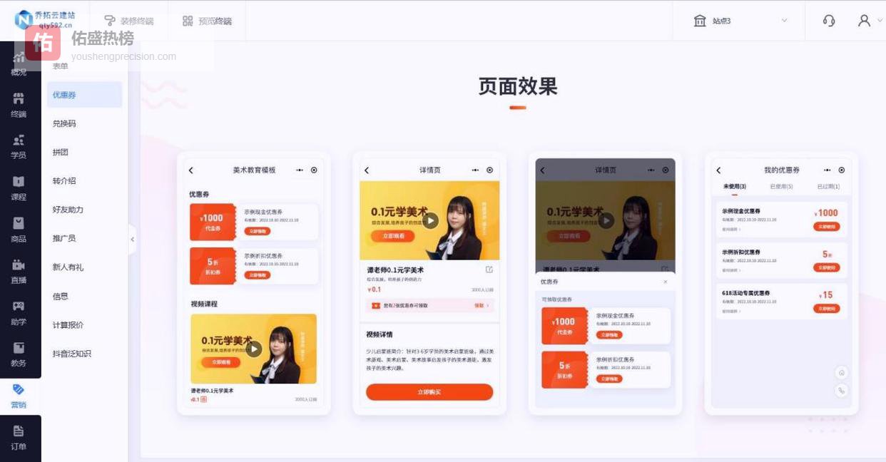 核心功能与性价比:支持图文、视频课程上架、在线支付,含基础营销工具;活动期基础版仅700元/年,成本比行业均价直降65%+,包含域名、云服务器及全年维护服务。